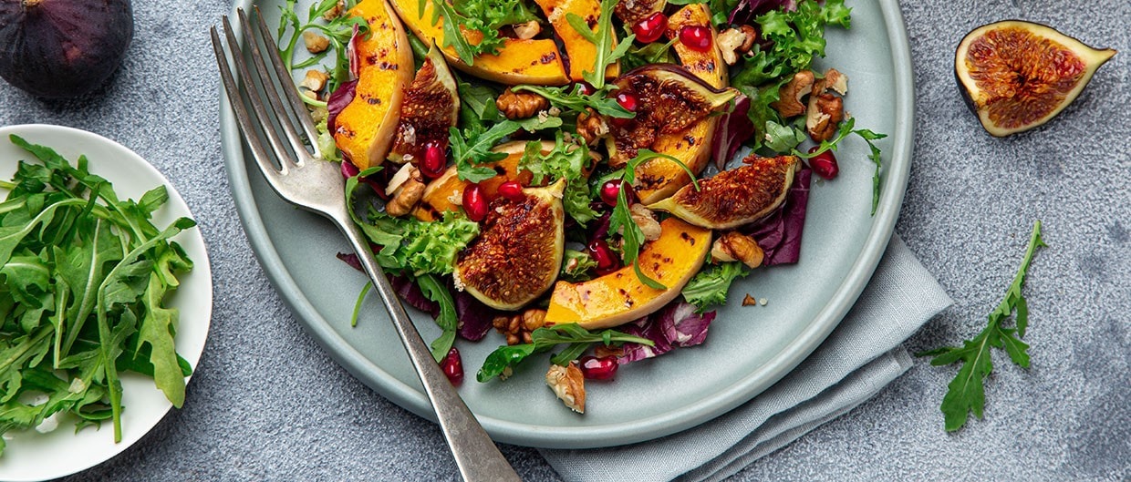 نصيحة: قم بتتبيل التين المطهو بطريقة تفريغ الهواء، ورقائق البطاطس الزرقاء، والسلطة بصوص الخل بتوت العليق.