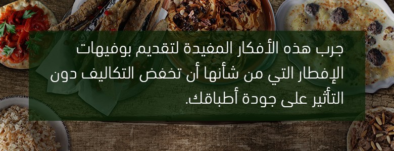 قدم أطباقاً مثل مجبوس الدجاج أو خروف محشي واستخدم قطع اللحم الأقل ثمناً. الأطباق التي تحتوي على أفخاذ الدجاج وكتف الحمل أسعارها معقولة ونكهتها لا تقاوم.