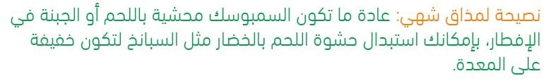 تقدم هذه المعجنات المقلية الشهية للزبائن الكربوهيدرات اللازمة لتنشيطهم بعد صيام طويل، ولكن يفضل تناولها بعد المقبلات الباردة (كالتي في الأعلى)، قطعتين أو ثلاثة ستكون كافية لكل شخص