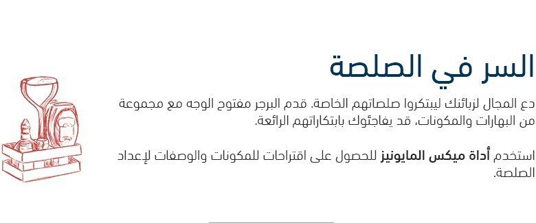 نصيحة: استخدم أداة ميكس المايونيز للحصول على اقتراحات للمكونات والوصفات لإعداد الصلصة.