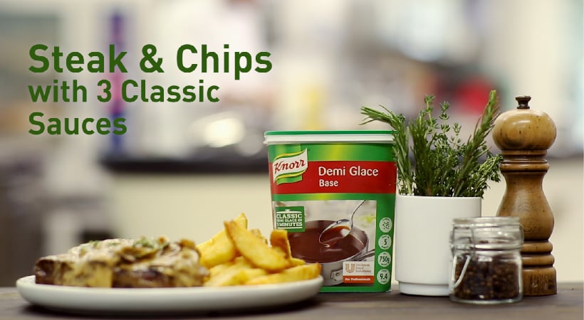 طبق الستيك والبطاطس المقلية هو وجبة العشاء المفضلة لدى الكثيرين من رواد المطاعم، ولكن تقديم هذا الطبق مع صوص غنية بالنكهة حتماً سيضيف بعداً جديداً للطبق. شاهد الشيف طوني يقوم بتحضير ثلاثة أنواع من الصوص الكلاسيكي بخفة وسرعة.