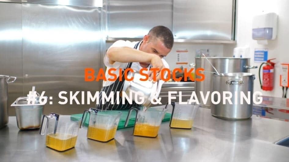 Other than showing you how to skim the stock, Chef Jean shares his suggestions to add a layer of earthiness to stocks.