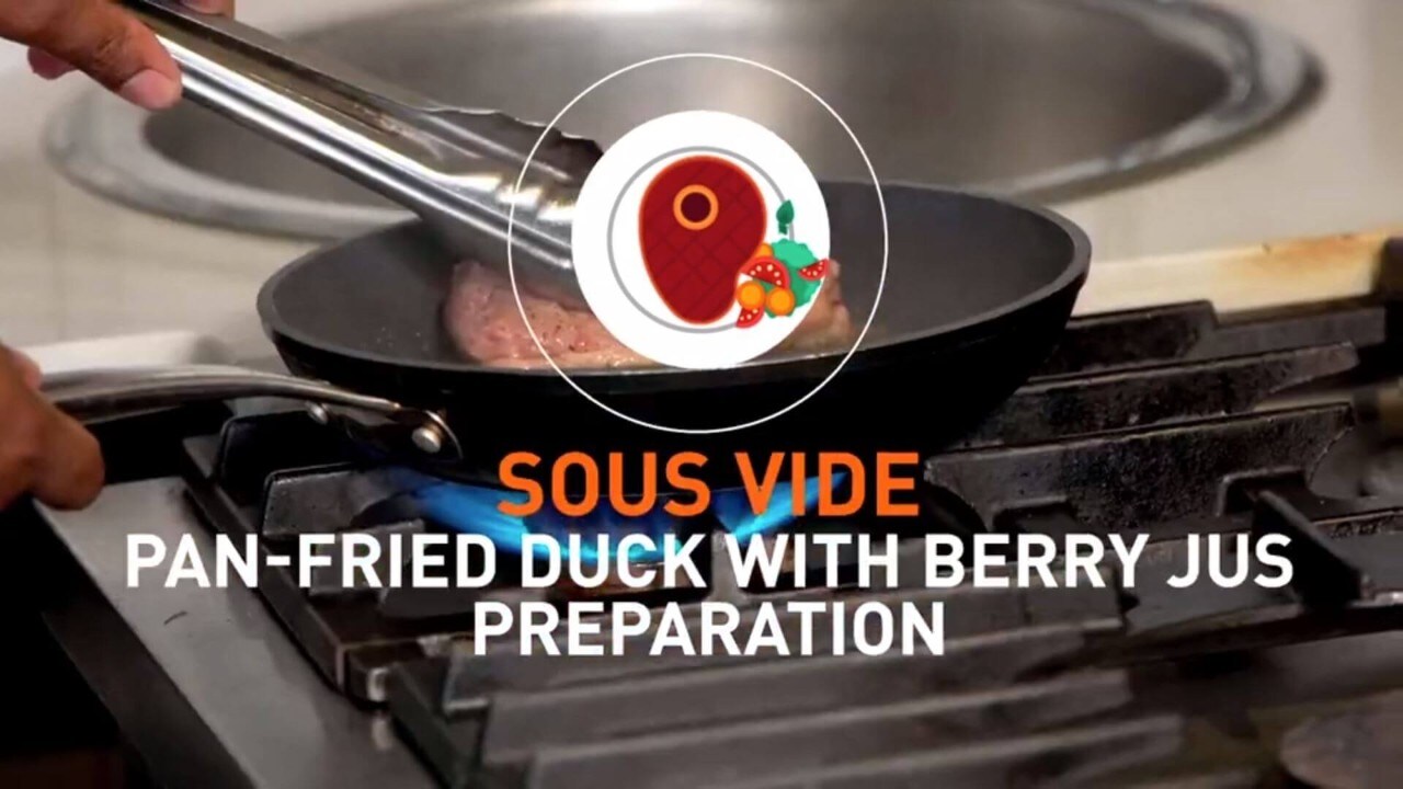 Begin with a zesty curing solution for the duck before seasoning and slipping into a sous-vide bag with a punch of additional flavourings. Then it’s time to sous vide the duck! Learn the ice-bath technique that brings the duck breast back to room temperature.