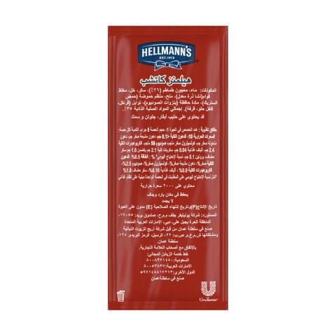 هيلمنز كاتشب ساشيه رائعة ومناسبة للوجبات السريعة. مصنوع من طماطم عالية الجودة وتقدم نكهات متوازنة ومثالية تناسب أي طبق. هذه الأظرف لها شكل مناسب لوضع الكاتشب على الطعام أو التزيين وتساعد في توفير التكلفة.