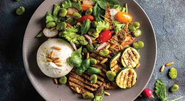 The subtle sweetness and buttery texture of Fava beans go well with burrata. Fava beans, also known as broad beans, are an excellent source of protein. Try out this recipe on your menu!