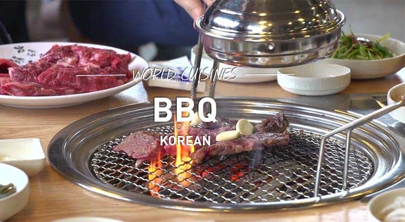 Korean barbecue consists of thinly sliced beef cuts, such as tenderloin, flank, brisket or rib-eye, that are grilled on gas or charcoal grills. Garlic cloves in sesame oil often accompany the meat, which is wrapped into lettuce with spicy dipping sauce and shredded spring onion.
