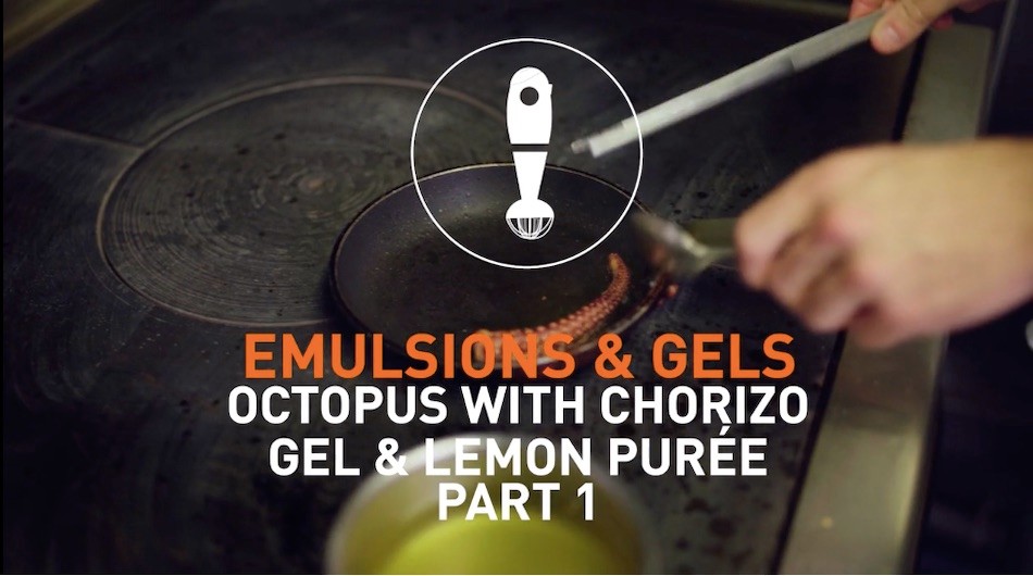 Emulsions and Gels - Octopus with chorizo gel & lemon puree part 1