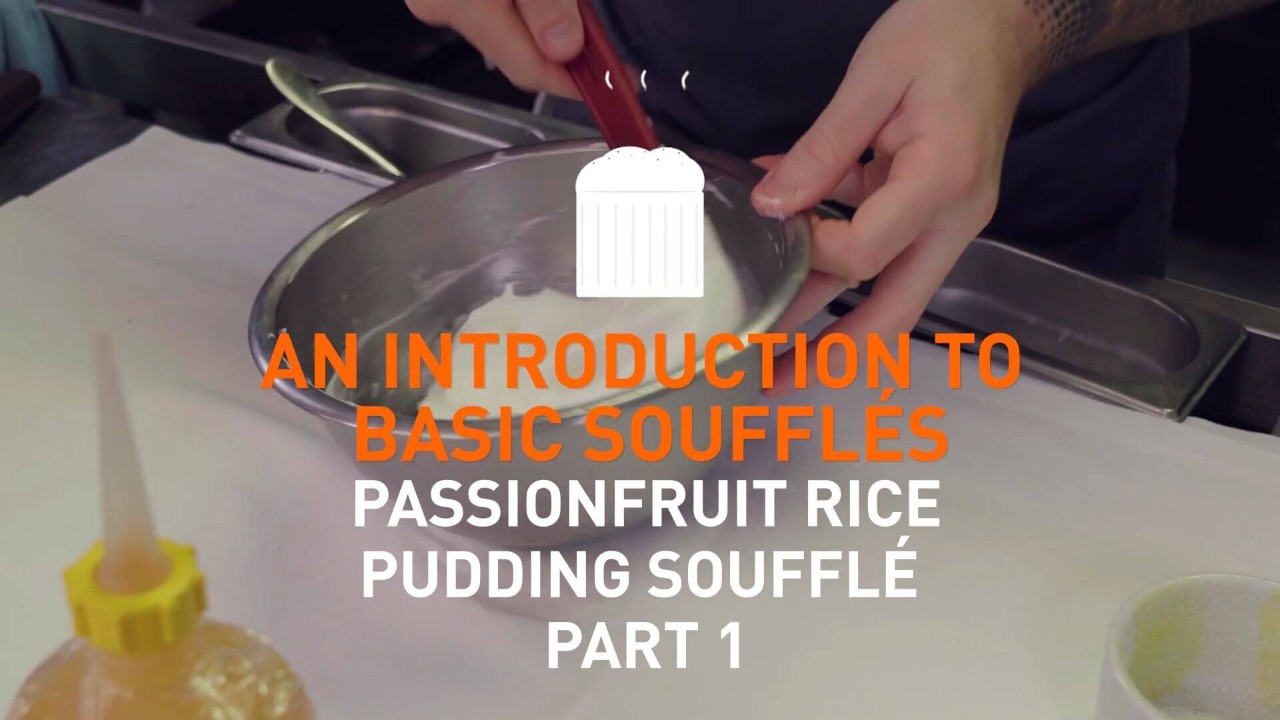 Chef Murphy at Launceston Place sweetens things up with a passionfruit rice pudding souffle. Familiarise yourself with the set-up involved as well as the sweet components that compose this dish.