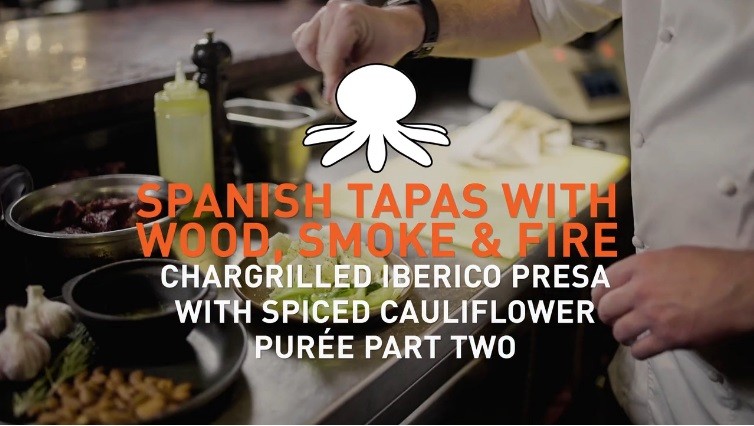 Watch how to perfectly cook Iberico pork presa on the robata grill, before plating up with spiced cauliflower puree and chargrilled cauliflower florets.