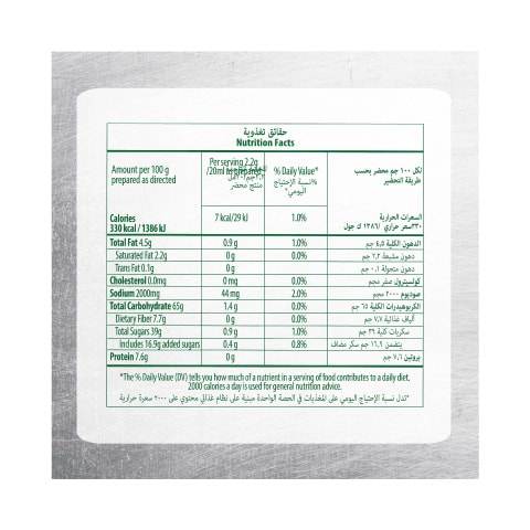 *% of Reference Intake of an average adult (8400kj/2000kcal)