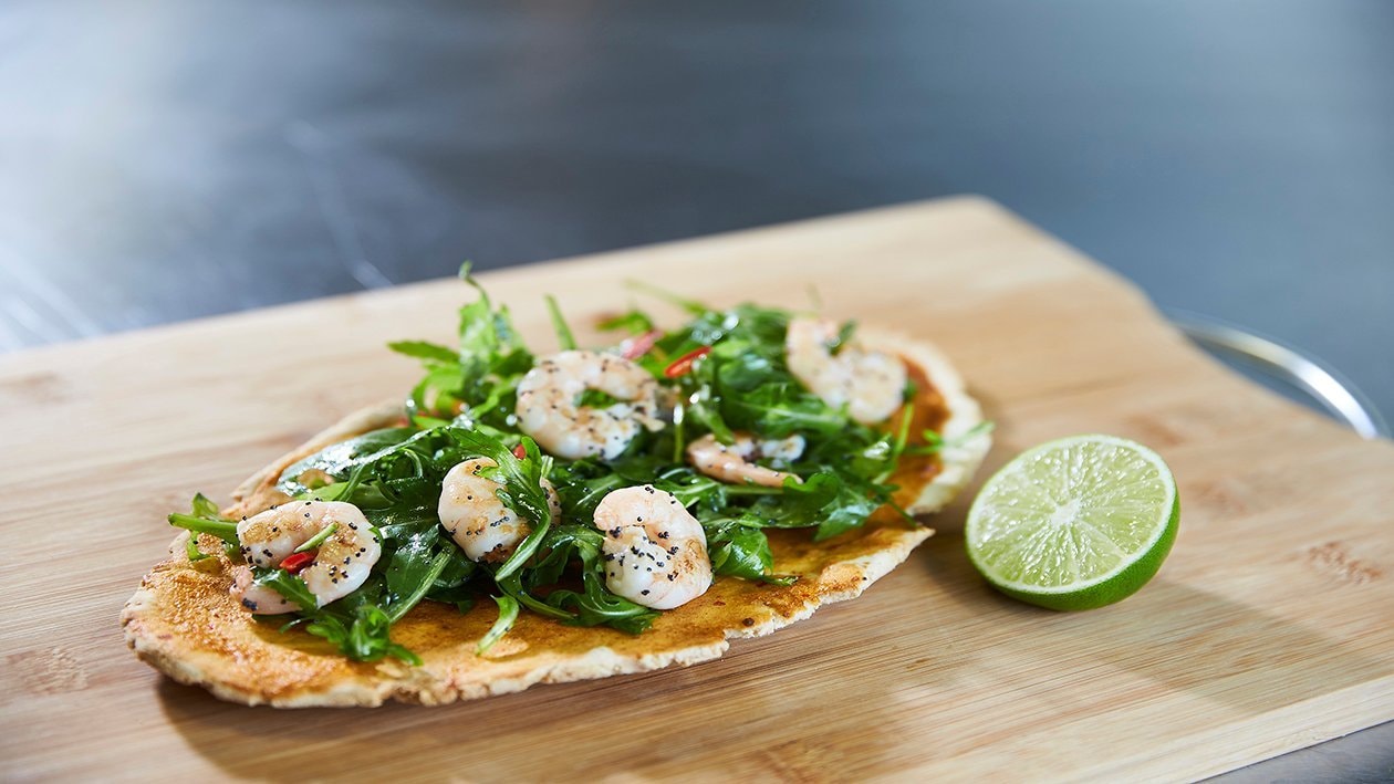 Arabic Flatbread & Lime Teriyaki King Prawn Salad