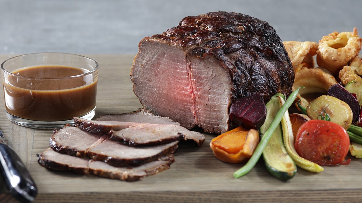 • Preheat the oven to 230°C. Rub the beef roast with the oil and Knorr Beef Flavoured Powder, sear on a hot grill.